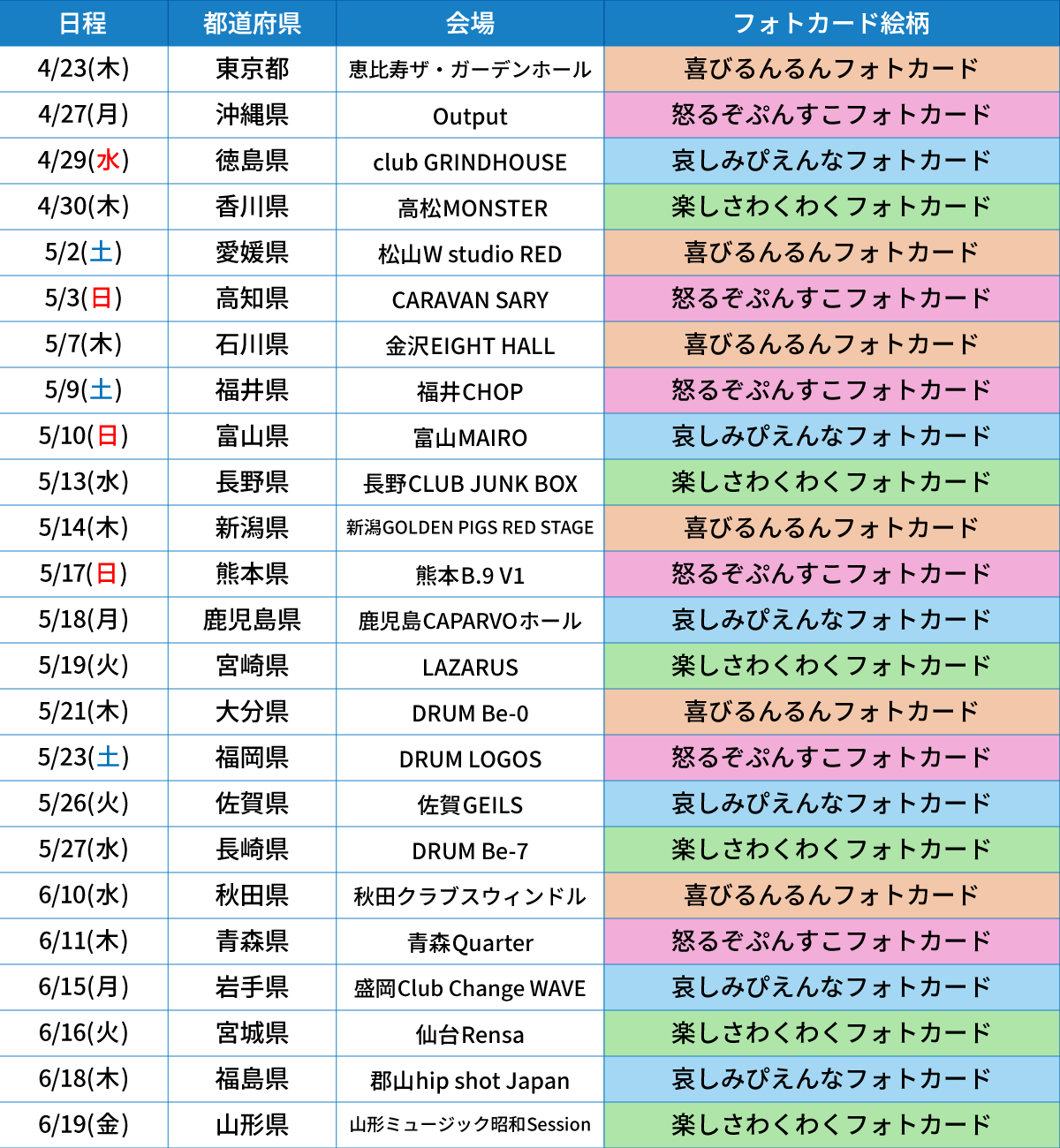 【「メンバー別フォトカード」会場・絵柄一覧】